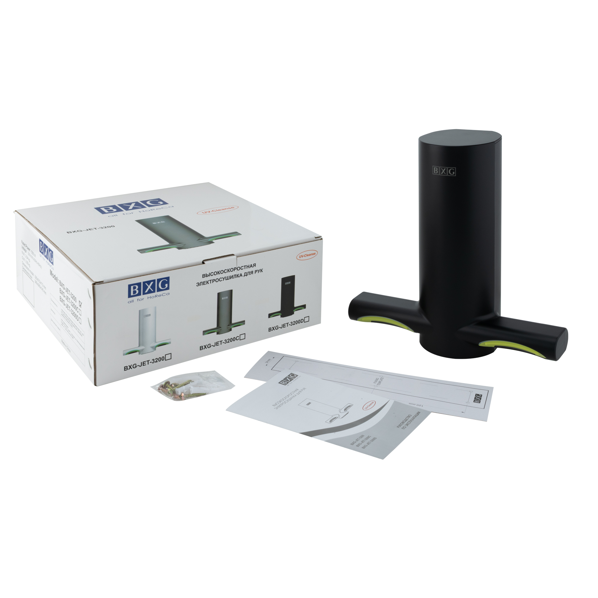 BXG-JET-3200D — высокоскоростная электросушилка сушилка для рук нового поколения с функцией Ультрафиолетового обеззараживания. Сушилка выполнена из высокопрочного пластика ABS в благородном белом цвете с глянцевым оттенком.