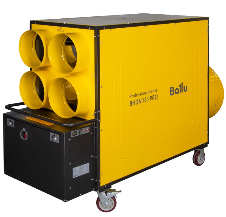 В отзывах о теплогенераторе Ballu BHDN 185 PRO отмечают функциональность прибора. Дизельные теплогенераторы непрямого нагрева BHDN PRO можно использовать внутри помещений при подключении труб дымоотвода с выводом продуктов сгорания наружу здания, в таком случае забор воздуха осуществляется непосредственно из помещения. При использовании прибора на открытом воздухе можно организовать подвод горячего воздуха в помещение или нужную обогреваемую зону через дополнительные трубы воздуховода.